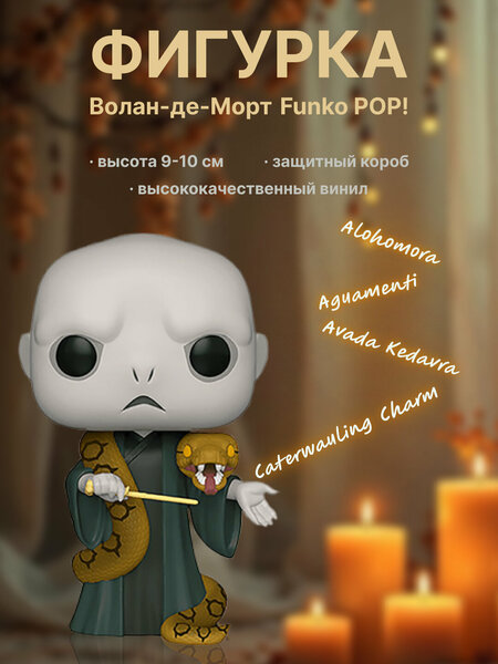 Фигурка Funko Pop! Волдеморт с Палочкой и Змеей Погрузитесь в мир темной магии с фигуркой Волдеморта с палочкой и змеей от Funko Pop. Эта фигурка представляет самого опасного темного волшебника, Лорда Волдеморта, с его верным спутником — змеей Нагини, а также магической палочкой, которая делает его еще более зловещим и могущественным. Она станет отличным дополнением к вашей коллекции и идеальным выбором для поклонников темных сил в мире Гарри Поттера. Особенности фигурки: Лорд Волдеморт — величайший темный маг, с белоснежной кожей и зловещим обликом. Его лицо без носа, с тонкими чертами, идеально передает его устрашающий внешний вид. Палочка Волдеморта — мощный артефакт, который сопровождает его на протяжении всей его злодейской карьеры. Палочка выполнена с детальной проработкой. Нагини — змея, верная служительница Волдеморта, свернувшаяся вокруг его тела. Змея добавляет фигурке дополнительную атмосферу страха и магии. Стиль Funko Pop! — фигурка выполнена в характерном стиле с крупными глазами и упрощенной формой, при этом каждый элемент, от лицевой детали до змеиной чешуи, тщательно проработан. Размер фигурки: Высота фигурки — около 10 см, что делает ее удобной для размещения на полке или в коллекции. Нагини, как часть композиции, может быть немного ниже самого Волдеморта. Материал: Фигурка изготовлена из высококачественного винила, что придает ей долговечность и стойкость к повреждениям, а также легкость в уходе. Подходит для коллекционеров: Фигурка Волдеморт с палочкой и змеей — обязательный элемент для коллекции поклонников Гарри Поттера и темных магов. Она станет отличным подарком для фанатов Волдеморта и всей вселенной темной магии, а также ярким акцентом в вашей коллекции Funko Pop. Преимущества: Детализированная и зловещая проработка всех элементов. Идеально подходит для поклонников мира Гарри Поттера и любителей фигурок Funko Pop. Отличный подарок для поклонников Волдеморта и темной магии.