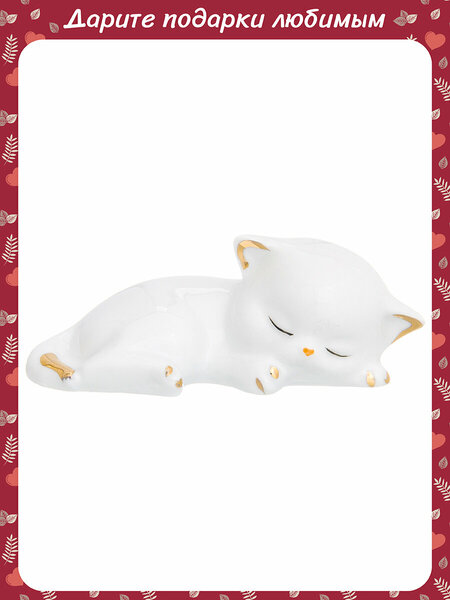 Декоративная статуэтка "Котенок спящий" 8х4х3 см сможет стать маленьким домашним украшением. Фигура котика выполнена из высококачественного фарфора и сможет стать интересным интерьерным решением. Милая мордочка, золотой носик-сердечко и закрытые глазки - уставшая кошечка приляжет отдохнуть в месте, которое сочтет самым лучшим. Разместите фарфоровую фигурку в интерьере на столе или на полке на самом видном месте. И тогда статуэтка будет поднимать настроение каждому, кто ее увидит! Поставляется в прочной картонной упаковке. Фарфоровый декор в виде кошки сможет стать настоящим украшением дома или приятным подарком на Новый год!