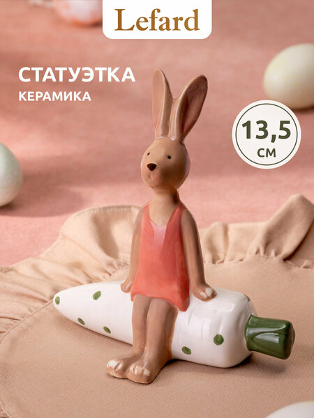 Фигурка, статуэтка Lefard "Кролик", керамическая, 13.5*7*13.5 см — это изящная деталь интерьера, которая станет символом уюта и тепла в вашем доме. Выполненная из керамики, фигурка привлекает внимание своей оригинальной формой и аккуратным исполнением. Белый цвет с красными акцентами подчёркивает элегантность и нежность статуэтки, делая её идеальным украшением для любого интерьера. Размеры фигурки составляют 13.5 см в длину, 7 см в ширину и 13.5 см в высоту. Она изготовлена в Китае и отличается высоким качеством материалов, что обеспечивает её долговечность. Керамическая структура статуэтки придаёт ей устойчивость к внешним воздействиям и сохраняет её привлекательный внешний вид на протяжении долгого времени. Статуэтка Lefard "Кролик" украшает пространство и несет в себе символическое значение. Она идеально подходит для украшения дома в Пасхальные праздники, передавая атмосферу тепла и радости. Эта фигурка может добавить элементы игривости и позитивных эмоций в интерьер, создавая уютную атмосферу круглый год. Фигурка упакована в подарочную упаковку, что делает её не просто прекрасным украшением, но и идеальным подарком. Будь то праздник или важное событие, она станет приятным сюрпризом и добавит в жизнь одариваемого немного радости и тепла.
