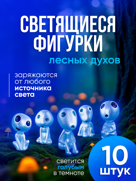 Декоративные светящиеся фигурки духи леса Кодама Представляем вашему вниманию уникальный набор декоративных статуэток «Духи леса Кодама»! Эти красочные и милые статуэтки станут прекрасным украшением, декором для вашего дома, квартиры, даже сада или растений в горшках. Они идеально подойдут для любого интерьерного решения и добавят в него уют, тепло и изюминку. Инопланетяне выполнены из качественной экологически чистой смолы, которая не боится влаги и не теряет цвет со временем, не имеют запаха и не токсичны, имеют красивую текстуру и гладкие на ощупь. Благодаря своей яркости и насыщенности, они будут радовать вас каждый день! Каждая садовая фигурка светится мягким светом, создавая атмосферу уюта и спокойствия. Это делает их идеальными для создания приятной атмосферы в вашем доме. Заряжаются они от любой лампы или солнца. Интенсивность светящегося эльфа Кодама зависит от продолжительности светового воздействия на него, от количества света, которое они успеют в себя вобрать. Набор декоративных фигурок духи леса Кодама из мультфильма Принцесса Мононоке (Хаяо Миядзаки) — это отличный подарок для близких и друзей, любителей аниме. Он подойдет как для украшения комнаты, так и для создания уникального интерьера. Эльфов можно использовать как на кухне, так и в спальне, гостиной или детской комнате. Они прекрасно впишутся в любой стиль и станут ярким аксессуаром в вашем интерьере. Эти предметы интерьера также могут стать отличной декорацией для аквариума с рыбками, террариума или муравьиной фермы. Эти приведения создадут уникальную атмосферу и привлекут внимание ваших гостей. В наборе 10 человечков размер от 2см до 4см ширина от 1см до 2см. Не упустите возможность приобрести этот замечательный набор и создать уютную атмосферу в своем доме!
