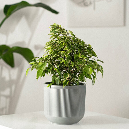 Фикус Бенджамина - многолетнее растение с уходом за которым справится даже новичок. Фикус в стильном кашпо станет ярким акцентом в любом интерьере, озеленит пространство вашего дома или офиса и очистит воздух в помещении. Стильное кашпо обеспечивает комфортные условия для фикуса, горшок подчеркнет красоту растения и подойдет под любой интерьер.