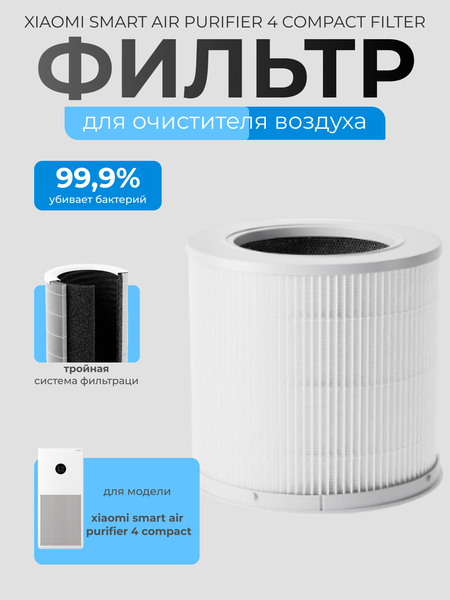 Описание Xiaomi Smart Air Purifier 4 Compact Filter: чистота воздуха – залог здоровья Каждый вдох влияет на наше самочувствие. С угольным фильтром Xiaomi вы получаете чистый воздух высшего качества благодаря передовым технологиям и удобству использования. Основные преимущества: Совместимость: идеально подходит для модели Smart Air Purifier 4 Compact и заменяет стандартный фильтр. Эффективная очистка: трехуровневая фильтрация устраняет до 99,98% частиц размером от 0,3 микрона, включая пыль, аллергены, бактерии и летучие органические соединения. Угольная технология: инновационная конструкция с 360-градусной рабочей поверхностью устраняет неприятные запахи и вредные соединения. Простота установки: фильтр легко устанавливается и заменяется, обеспечивая комфортное использование. Долговечность: срок службы составляет 6–12 месяцев, в зависимости от интенсивности эксплуатации. Инвестируйте в здоровье своей семьи с оригинальной бытовой техникой Xiaomi, которая сделает ваш дом оазисом свежести и чистоты!