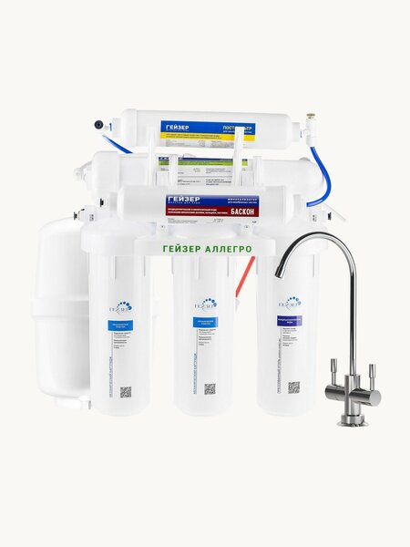 {"widgets":{"@card/BlockReviewsGalleryCardGallery":{"/content/page/fancyPage/defaultPage/reviewBlock/photos":{"wrapperProps":{"margins":{"top":2,"bottom":3}},"limit":12,"composeId":"7903103568930776574","needScroll":true,"isDesktop":true,"size":"medium","mediaItemIds":["mi_5594740911702220239","mi_14187581600281392710","mi_12538030095007239094","mi_8644491743377093840","mi_15111125704862674822","mi_17942942234483489456","mi_13399167454812409171","mi_4381006529771260937","mi_18042650746925130732","mi_7886456996544589665","mi_5114046708704564432","mi_8910721318486307190","mi_1082124564122048180","mi_1151201669301615782","mi_459810787563909696","mi_5031730836662622157","mi_11810649728490983583","mi_12490470216880887312","mi_2379903720141218595","mi_9172455789147215538","mi_3623516407734029740","mi_8739518904115261266","mi_3069516060391767619","mi_1676025976793548176","mi_4695970714309379083","mi_14320506877054880582","mi_15004661552553734181","mi_6211063344194569984","mi_13599536622643124429","mi_5984676674538383259","mi_701158217287766836","mi_15326385275091987474","mi_9374450463280951639","mi_3160154689356701436","mi_16968512952004662693","mi_1817022681406724467","mi_11591649510755129698","mi_16516326293119630138","mi_3160859720102793530","mi_17069100735672438091","mi_7216078775515446474","mi_3078272371644260696","mi_15749290250372053644","mi_14123993062473879866","mi_15807051817843166837","mi_12779419045635636894","mi_5675353371214915781","mi_5355766234610200460","mi_11443617846402054578","mi_17722719692103417192"]}}},"meta":{"/content/page/fancyPage/defaultPage/reviewBlock/photos":{"name":"@card/BlockReviewsGalleryCardGallery"}},"collections":{"reviewItem":{"ri_422450291":{"reviewId":"422450291","author":{"nickname":"Владимир","avatarMediaItemId":"mi_9468741315133123287","isAnonymous":false,"publicId":"kokh.wladimir","transition":{"type":"userPublicProfile","params":{"publicId":"kokh.wladimir","title":"Владимир","isPreview":true}},"analyticsData":{"uid":"360906800"},"isPublicProfile":false,"isMyProfile":false},"authorItem":"au_16937476203407891417","rating":5,"reviewDate":"1764407145678","date":"29 ноября 2025","advantages":"Вода отлично очищается. Установка в целом простая без лишних приседаний. После установки купил разные тестеры качества воды и все параметры в идеале. Как будто в фильтре сидит поп с кадилом и освещает 😅","disadvantages":"Много трасс между фильтров. Фильтр конечно не видно в шкафу, но этот кракен триггерит перфекционизм.","commonText":"Скорость фильтрации зависит от давления в системе. В моем случае 5-6 бар, что достаточно для эффективной фильтрации. У кого давление низкое, то фильтрация будет медленнее и расход воды будет высокий. Учитывайте это заранее. \nМожно купить систему аллегро, но использовать фильтра от премиум версий. Совместимость полная. 10SL.","media":[],"fixId":422450291},"ri_413023723":{"reviewId":"413023723","author":{"nickname":"Александр Срибный","avatarMediaItemId":"mi_14806722753082773803","isAnonymous":false,"publicId":"0um86y8tz16enmygx59z1z3xg4","transition":{"type":"userPublicProfile","params":{"publicId":"0um86y8tz16enmygx59z1z3xg4","title":"Александр Срибный","isPreview":true}},"analyticsData":{"uid":"156392796"},"isPublicProfile":false,"isMyProfile":false},"authorItem":"au_16457273123088174941","rating":5,"reviewDate":"1758724418922","date":"24 сентября 2025","advantages":"Оно работает, 2 крана. Вода вкусная, мне больше по вкусу без дополнительной минерализации.","disadvantages":"Очень низкий напор воды в проточном режиме. При давлении в системе в 2 атм бак набирает всего пару литров. Если бы я сразу знал об особенностях данного фильтра покупал бы сразу модель с насосом.\nТак как крана 2 пришлось сверлить в мойке еще одну дырку, это было сложно...\nВ сброс уходит в 3-5 раз больше воды, чем получаешь фильтрованной после мембраны.\nПосле покупки насоса в бак набирается 7,5 литров воды.","commonText":"Если у Вас давление в системе примерно 2 атмосферы как у меня, берите сразу Гейзер Аллегро ПМ.\nПри давлении 2 атмосферы струйка еле бежит, примерно 100 миллилитров в минуту.\nДо этого стояла ионная система Аквафор из 3х колб, напор фильтрованной воды был всегда хорошим, в мембранных фильтрах всегда нужен насос.\nУзнал об этой особенности когда все подключил. \nЧтобы снять трубку, нужно надавить на основание, и тогда она легко выходит.\nПосле покупки насоса без бака получаю примерно 280 миллилитров в минуту.\nС таким напором без накопителя пользоваться не удобно.\nУчитывайте что даже с насосом у Вас в баке будет