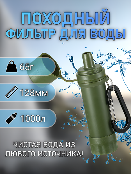 самый компактный фильтр на рынке - всего 128 мм! Походный фильтр для воды может эффективно обеспечить чистую и безопасную питьевую воду из любого открытого водоема. Это достигается с помощью четырехступенчатой системы очистки воды. Фильтрация проходит через мембрану 0,01 микрона и физически удаляет 99,99% всех бактерий, таких как сальмонелла, холера и кишечная палочка. Фильтр для воды туристический также удаляет простейших, таких как Giardia и Cryptosporidium. Походный фильтр идеально подходит для чрезвычайных ситуаций. Удобен для кемпинга, пеших прогулок и туристических походов. Система может эффективно обеспечить более 1000 литров чистой и безопасной воды. Прост в применении! Не содержат химикатов! внимание: Регулярная продувка фильтра после использования помогает поддерживать фильтр в чистоте и предотвращает засорение! Фильтрующий материал: 1 Медицинская УФ-мембрана из полых волокон. 2. Активированный уголь из скорлупы кокосового ореха. 3. Антибактериальные шарики из наночастиц серебра. 4. Медицинский полипропиленовый хлопок. Производитель: Purewell Модель: K8612M Материал: ABS-пластик Цвет: Зеленый Размеры: 12,8 см x 3,0 см Вес: 65 гр