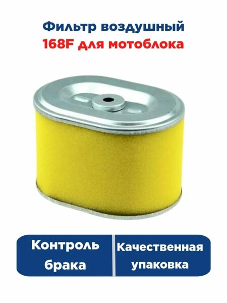 Фильтр воздушный 168F для мотоблока Основные характеристики: Материал: качественный фильтрующий элемент из специального материала, устойчивого к воздействию пыли и влаги. Совместимость: подходит для широкого спектра моделей мотоблоков с двигателем 168F.