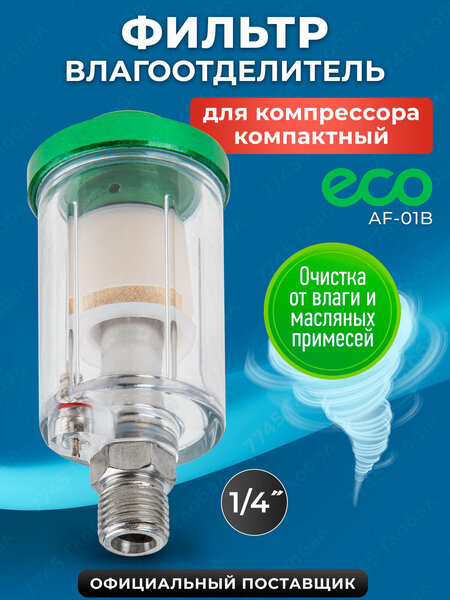 Фильтр воздушный ECO AF-01B - это высококачественный продукт, который предназначен для очистки воздуха от пыли и влаги. Он обеспечивает более качественную работу пневмоинструмента и продлевает его срок службы. Влагоотделитель имеет рабочее давление до 10 атмосфер, что позволяет использовать его в различных условиях. Фильтр воздушный ECO AF-01B оснащен латунным фильтроэлементом, что гарантирует его долговечность и эффективность. Корпус влагоотделителя изготовлен из пластика, что делает его легким и прочным. Диаметр входного и выходного соединений составляет 1/4M и 1/4F соответственно, что обеспечивает удобство подключения к пневмоинструменту. В целом, фильтр воздушный ECO AF-01B является отличным выбором для тех, кто ценит качество и надежность. Он поможет обеспечить стабильную работу вашего пневмоинструмента и продлить его срок службы.