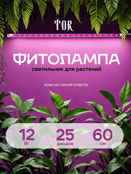 Фитолампа TOR, 60 см, красно-синий спектр, LED, 12Вт, провод 60 см