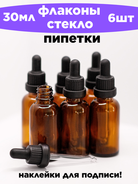 Косметический стеклянный флакон с пипеткой объемом 30 мл. из полупрозрачного темного стекла. Это один из самых популярных объемов для косметических флаконов. Бутылочка идеально подойдет для хранения масел, сывороток и других жидких косметических и фармацевтических средств. Удобная стеклянная пипетка с резиновой грушей помогает аккуратно дозировать использование жидкости, а темный цвет стекла обеспечивает защиту от света. Вы можете выбрать комплект от 1 до 20 штук. Упаковка в картон и пупырчатую пленку обеспечат сохранность при доставке как для самих флаконов, так и для стеклянной пипетки. Бутылочка имеет стандартную горловину 18/410 и может быть использована с другими крышками. Вместе с пустым флаконом вы получите наклейку белого цвета и сможете подписать, какое средство вы храните в каждой бутылочке
