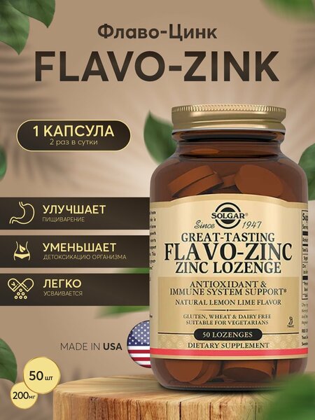 Флаво-Цинк Solgar – это высококачественный продукт от известного американского производителя Solgar. Он представляет собой высокоусвояемую форму цинка с флавоноидами, разработанную специально для поддержания здоровья кожи, волос и ногтей, а также иммунной системы. Цинк играет важную роль в синтезе белка и коллагена, способствуя заживлению кожи и укреплению волос и ногтей. Флавоноиды усиливают антиоксидантную защиту и поддерживают иммунитет, что делает Флаво-Цинк Solgar особенно полезным для людей с повышенной нагрузкой на иммунную систему. Состав Флаво-Цинка Solgar включает цинк (в форме глюконата), флавоноиды и вспомогательные вещества. Способ применения прост: взрослым рекомендуется принимать по 1 пастилке в день во время еды. Флаво-Цинк Solgar выпускается в форме 50 пастилок, что обеспечивает удобство дозирования и хранения. Флаво-Цинк Solgar подходит для взрослых и детей с рождения, обеспечивая поддержку здоровья кожи, волос и ногтей, а также иммунной системы.