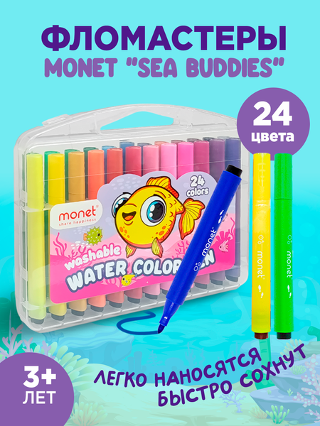 Фломастеры Monet "SEA BUDDIES", 24 шт, водная основа, игольчатые наконечники