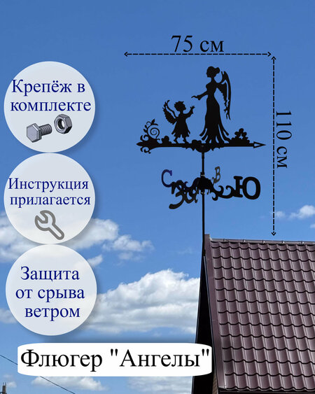 Флюгер "Ангелы"сразу же приковывает взгляды своим уникальным дизайном. Изготовлен из высококачественных материалов, он прослужит вам долгие годы, не теряя своего первоначального вида. Каждая деталь продумана до мелочей, чтобы создать гармонию между функциональностью и эстетикой. Он является идеальным дополнением к любому стилю крыши, монтаж на любой тип кровли. Придаст ей индивидуальность и шарм. Защита от срыва ветром и гарантия 5 лет.