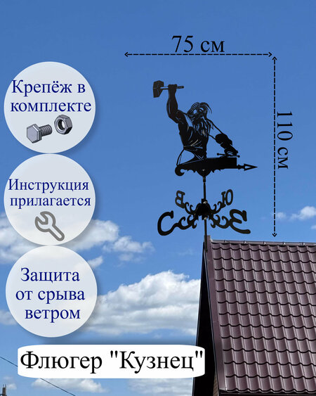 Флюгер "Кузнец (ОФ)"сразу же приковывает взгляды своим уникальным дизайном. Изготовлен из высококачественных материалов, он прослужит вам долгие годы, не теряя своего первоначального вида. Каждая деталь продумана до мелочей, чтобы создать гармонию между функциональностью и эстетикой. Он является идеальным дополнением к любому стилю крыши, монтаж на любой тип кровли. Придаст ей индивидуальность и шарм. Защита от срыва ветром и гарантия 5 лет.