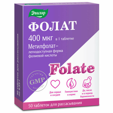 Компания «Эвалар» разработала «Фолат 400 мкг» - препарат с оптимальным содержанием активной формы фолиевой кислоты с высокой биодоступностью – метилфолата, в форме таблеток для рассасывания. В отличие от обычной фолиевой кислоты, метилфолат легче усваивается и начинает действовать гораздо быстрее.
