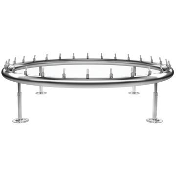Фонтанное кольцо PR-500 ø0.5m. Гидравлические таблицы смотрите в доп. фото товара. Фонтанное кольцо предназначено для формирования водной композиции с большим количеством одноструйных фонтанных насадок. Фонтанное кольцо изготавливается из полированной нержавеющей стали AISI- 304. В стоимость комплекта фонтанного кольца включены телескопические ножки- 3 шт, фонтанные насадки- zas 15- 16 шт, крепления для светильников - 3 шт. В нижней части кольца расположены 2 патрубка для подключения напорных трубопроводов подачи воды. Характеристики: Модель PR-500 Диаметр кольца 0,5 м Диаметр трубы, 50 мм Кол-во сегментов 1 Водная картина линия струй Кол-во форсунок zas 15, шт х d 16 x 1/2" Кол-во входов, шт х d, мм 2 х 2" Кол-во телескопических стоек, шт 3 Рекомендуемое кол-во светильников, шт 3 Расстояние между насадками, мм 90 Зависимость от уровня воды нет Материал кольца нерж. сталь 304 Шаровое соединение у насадок да