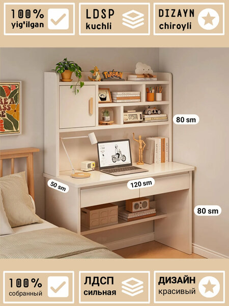 Учебный стол: Идеально подходит для детей и подростков для выполнения домашних заданий, чтения и творчества.