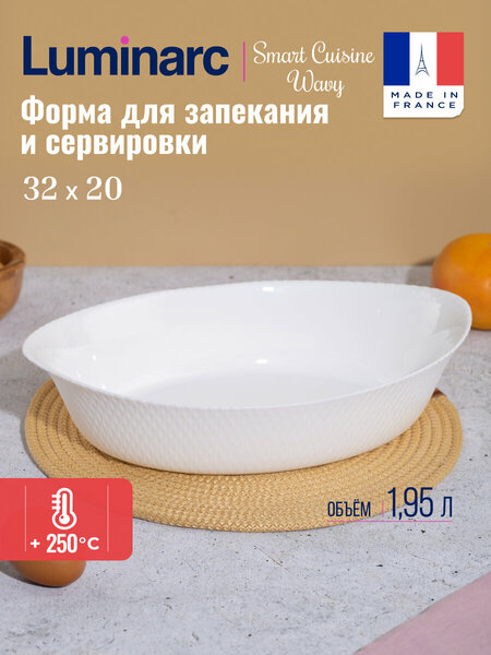 Форма для запекания Luminarc Smart Cuisine Wavy овальной формы размером 32x20 см - идеальное решение для приготовления различных блюд. Изготовленная из прочного стекла, она выдерживает высокие температуры и гарантирует равномерное приготовление пищи. Стильный дизайн формы включает в себя плавные линии, что делает ее идеальным дополнением к любой кухне. Волнистая структура обеспечивает равномерное циркулирование воздуха, что способствует сохранению аромата и вкуса пищи. Овальная форма идеально подходит для запекания рыбы, мяса, овощей и других продуктов. Ее можно использовать как для порционных, так и для больших блюд. Благодаря стеклянной поверхности, форму легко мыть и она не впитывает запахи.