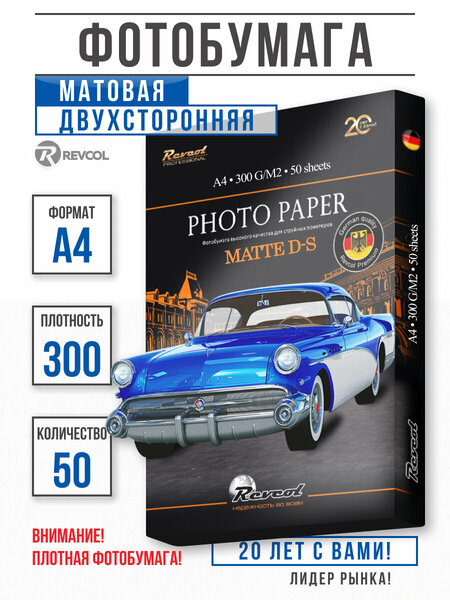 Revcol - Качество проверенное временем! Высококачественная премиум (premium) фотобумага матовая (matt) а4 двухсторонняя изготавливается на оригинальном оборудовании под контролем немецкой компании Schoeller Group с использованием передовых европейских производственных технологий. В пачке по 50 листов. Предназначена для потоковой струйной печати и является самым востребованным как среди профессиональных фотографов, так и среди любителей. Высокое разрешение до 5680 dpi. Состоит из ультратонкого полимерного верхнего покрытия и слоя, влияющего на белизну самого материала, а также его устойчивости к влажности и свету, и которые препятствуют растеканию краски и защищают изображение от повреждений. Несколько важных характеристик: Для струйных принтеров Epson, Canon, HP, Brother. 1. Показывает идеальный результат с чернилами REVCOL. 2. Уже более 15 лет присутствует на рынке и является лидером по объему продаж, что говорит о хорошем качестве при доступных ценах. 3. Имеет не менее, чем из пяти слоев, каждый из которых служит для определенной цели. Чем больше, тем дороже и лучше бумага (paper). При этом толщина не увеличивается, поскольку измеряются в микронах. 4. Плотность. Чем выше, тем лучше впитывается краситель. Для хороших снимков нужно как минимум 15 г/м2, для визиток — не менее 250 г/м2, для графических картинок — 100 г/м2 и более.