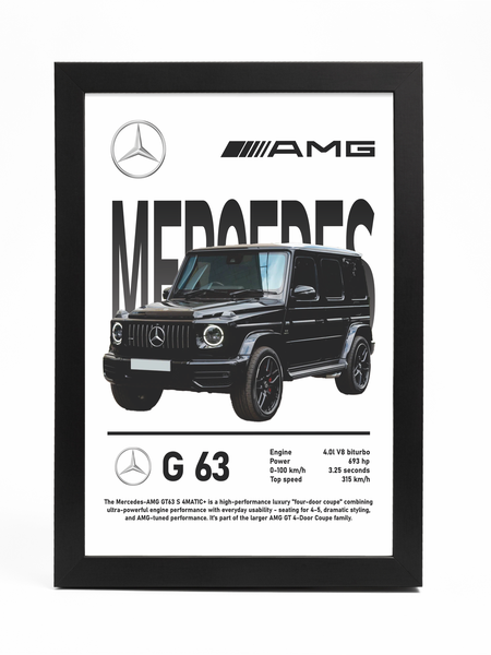 Постер с изображением автомобиля в рамке формата A4