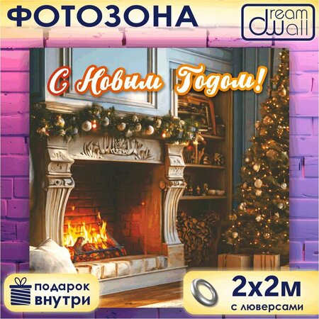 Фотозона баннер С Новым Годом! Камин и елка, 200х200