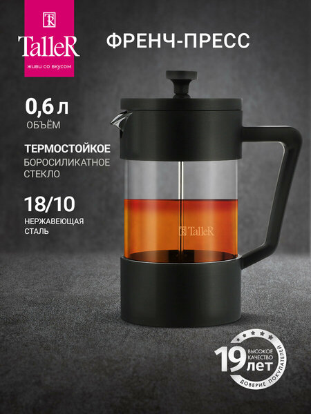 {"widgets":{"@card/BlockReviewsGalleryCardGallery":{"/content/page/fancyPage/defaultPage/reviewBlock/photos":{"wrapperProps":{"margins":{"top":2,"bottom":3}},"limit":12,"composeId":"17579477515545158129","needScroll":true,"isDesktop":true,"size":"medium","mediaItemIds":["mi_16077341472564539707","mi_1613113550051088383","mi_5752674862640600175","mi_11349146537730744262","mi_9067607746408704715","mi_17774372603859696904"]}}},"meta":{"/content/page/fancyPage/defaultPage/reviewBlock/photos":{"name":"@card/BlockReviewsGalleryCardGallery"}},"collections":{"reviewItem":{"ri_433660739":{"reviewId":"433660739","author":{"nickname":"Анастасия Дмитриева","avatarMediaItemId":"mi_8574906088681721890","isAnonymous":false,"publicId":"ptzu4h9m0xx91d0uk8t67y627w","transition":{"type":"userPublicProfile","params":{"publicId":"ptzu4h9m0xx91d0uk8t67y627w","title":"Анастасия Дмитриева","isPreview":true}},"analyticsData":{"uid":"42657367"},"isPublicProfile":false,"isMyProfile":false},"authorItem":"au_5405611690985111563","rating":5,"reviewDate":"1770656607762","date":"9 февраля","advantages":"Я очень люблю посуду фирмы Taller. Практично, долговечно, красивый дизайн. Надеюсь и этот френч-пресс прослужит долго.","disadvantages":"Не выявила. красивый, стильный, прочный.","media":[],"fixId":433660739},"ri_382536784":{"reviewId":"382536784","author":{"nickname":"Анна К.","avatarMediaItemId":"mi_5519926899651502023","isAnonymous":false,"publicId":"2t2nvanpbf1t5pe7aeknw746x0","transition":{"type":"userPublicProfile","params":{"publicId":"2t2nvanpbf1t5pe7aeknw746x0","title":"Анна К.","isPreview":true}},"analyticsData":{"uid":"1007612922"},"isPublicProfile":false,"isMyProfile":false},"authorItem":"au_10298908966049520759","rating":5,"reviewDate":"1742645705805","date":"22 марта 2025","disadvantages":"Нет","commonText":"Удобный\nСтильный\nЗа счет доп поддона снизу не сильно нагревается и можно ставить без спец подложки\nЧуть чуть фильтр пропускает мелкие чаинки наверх, но это совсершенно не критично))","media":["mi_16077341472564539707","mi_1613113550051088383"],"fixId":382536784},"ri_299766991":{"reviewId":"299766991","author":{"nickname":"Иван М.","avatarMediaItemId":"mi_16086680120718062133","isAnonymous":false,"publicId":"pn7rhrh0m5c919zvrdcge3jtdr","transition":{"type":"userPublicProfile","params":{"publicId":"pn7rhrh0m5c919zvrdcge3jtdr","title":"Иван М.","isPreview":true}},"analyticsData":{"uid":"788126788"},"isPublicProfile":false,"isMyProfile":false},"authorItem":"au_3327858496445062201","rating":5,"reviewDate":"1713559108491","date":"20 апреля 2024","advantages":"Качественные материалы. Плавный ход поршня.","media":[],"fixId":299766991},"ri_310981096":{"reviewId":"310981096","author":{"nickname":"Pavel P","avatarMediaItemId":"mi_16318357130876001212","isAnonymous":false,"publicId":"4dbw5jhwjzyg7zmma8z0hhrw8m","transition":{"type":"userPublicProfile","params":{"publicId":"4dbw5jhwjzyg7zmma8z0hhrw8m","title":"Pavel P","isPreview":true}},"analyticsData":{"uid":"596789949"},"isPublicProfile":false,"isMyProfile":false},"authorItem":"au_8937553664121886131","rating":4,"reviewDate":"1717223741263","date":"1 июня 2024","advantages":"Качественно выполнен. Все углы защищены что минимизирует риск разбить колбу, в отличие от конкурентов","disadvantages":"Поршень свободно ходит в колбе, из-за чего мелкие чаинки пропускает в зазоре между сеткой и колбой (по окружности). Предшественник из IKEA был в разы плотней.","commonText":"В целом товар хороший, упакован надежно, но функционал отделения чаинок оказался не самым подогнанным. Возможно это партия такая, т.к. у всех изделий есть допуски размерных отклонений, колба из стёкла в том числе. Если не с чем сравнивать, будет радовать.","media":["mi_17774372603859696904"],"fixId":310979501},"ri_393360883":{"reviewId":"393360883","author":{"nickname":"TSN-5","avatarMediaItemId":"mi_11066759435511029631","isAnonymous":false,"publicId":"51au5r52uq9670y4dfn40x99fc","transition":{"type":"userPublicProfile","params":{"publicId":"51au5r52uq9670y4dfn40x99fc","title":"TSN-5","isPreview":true}},"analyticsData":{"uid":"82235614"},"isPublicProfile":false,"isMyProfile":false},"authorItem":"au_14813790229917176546","rating":5,"reviewDate":"1747927511863","date":"22 мая 2025","advantages":"Очень понравился, ожидания оправдал внешне и в деле","disadvantages":"нет","commonText":"Советую к покупке, удобный и помыть удобно","media":[],"fixId":393360883},"ri_386007107":{"reviewId":"386007107","author":{"nickname":"laughter","avatarMediaItemId":"mi_2712034982493960209","isAnonymous":false,"publicId":"wuzuxm4kr8fv01z0b36jwqgdg8","transition":{"type":"userPublicProfile","params":{"publicId":"wuzuxm4kr8fv01z0b36jwqgdg8","title":"laughter","isPreview":true}},"analyticsData":{"uid":"787242133"},"isPublicProfile":false,"isMyProfile":false},"authorItem":"au_5509388380957398585","rating":5,"reviewDate":"1744196678262","date":"9 апреля 2025","advantages":"Функциональность","disadvantages":"Нет","commonText":"Отличный чайник. Беру уже второй, первый разбили(","media":[],"
