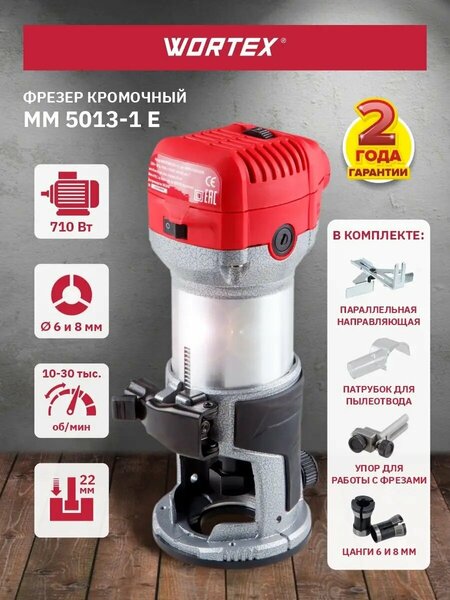 Фрезер кромочный WORTEX MM 5013-1 E + аксессуары (710 Вт, цанги 6 и 8 мм, 10000-30000 об/мин) (MM50131E02618)