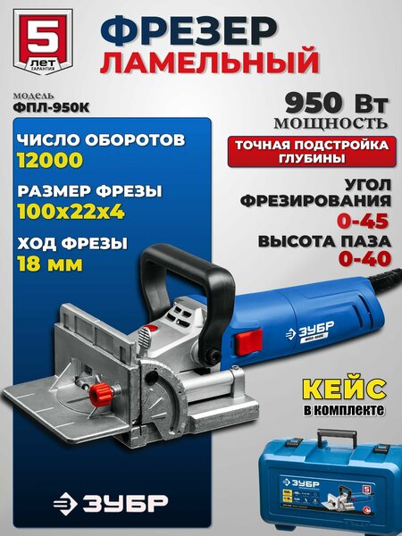 Фрезер по дереву ламельный позволяет точно выполнять пропилы под ламельные соединения. Фрезер электрический ФПЛ-950К, предназначен для формирования линейных пазов для обеспечения ламельного соединения деревянных конструкций. Этот фрезерный станок по дереву обеспечивает четкую работу благодаря легкому скольжению по направляющим. Литая алюминиевая поворотная линейка обеспечивает большую точность выпиливания. Возможность точной настройки и использования фиксированных значений глубины обработки в пределах от 0 до 18 миллиметров, делают данный ламельный фрезер электрический отличным строительным инструментом для профессионалов и любителей. Выпиливание под углом с фиксированными положениями в 45 и 90 градусов. Удобная дополнительная рукоятка фрезера для надежной фиксации и повышенной точности. Прецезионный реечный механизм для настройки вертикальной рейки в пределах 40 мм. Функция блокировки шпинделя способствует удобной и быстрой замене расходного инструмента. Мешок для сбора пыли в комплекте. Удобный кейс для хранения и переноски.