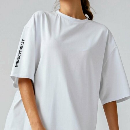 Женская белая футболка свободного кроя, оверсайз с качественным принтом — отличный выбор для стильных и модных девушек! Изготовлена из дорогого и качественного 100% хлопка. Этот универсальный предмет гардероба подойдёт для повседневной носки. Футболка выполнена в одном цвете, не просвечивает. Материал изделия сохраняет цвет и форму, не скатывается. Он очень комфортный и приятный к телу, позволяет коже дышать в тёплую погоду, не вызывает аллергии и раздражений. Свободный крой делает футболку особенно актуальной и модной в этом сезоне, а также отлично сочетается с джинсами и юбками. Эта универсальная футболка идеально подходит для походов, тренировок и прогулок. Ее оверсайз-крой обеспечивает полную свободу движений, позволяя чувствовать себя уверенно и комфортно. Футболка не только невероятно удобная, но и долговечна. Она выдержит множество стирок, сохраняя свой первозданный вид. Кроме того, эта стильная футболка станет идеальным подарком для вашей подруги, девушки или сестры на Новый год, день рождения и 8 марта. Ее яркий белый цвет с эксклюзивным и качественным принтом привлечет внимание и добавит яркую нотку в любой гардероб. Рекомендации по стирке: 1. Перед стиркой выверните футболку наизнанку; 2. Установите температуру воды 30 градусов; 3. Используйте стиральный порошок без хлора и отбеливающих компонентов.