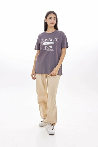 Легкая футболка свободного кроя с круглым воротником, комфортными короткими рукавами и крупным текстовым принтом. Отличный элемент любого базового гардероба.