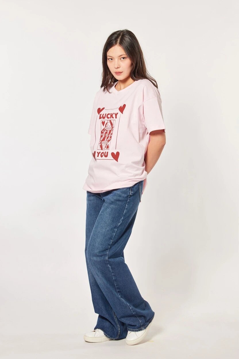 Базовая футболка свободного кроя с крупным печатным принтом. Имеет круглый воротник и комфортные короткие рукава. Отличный элемент любого повседневного гардероба.
