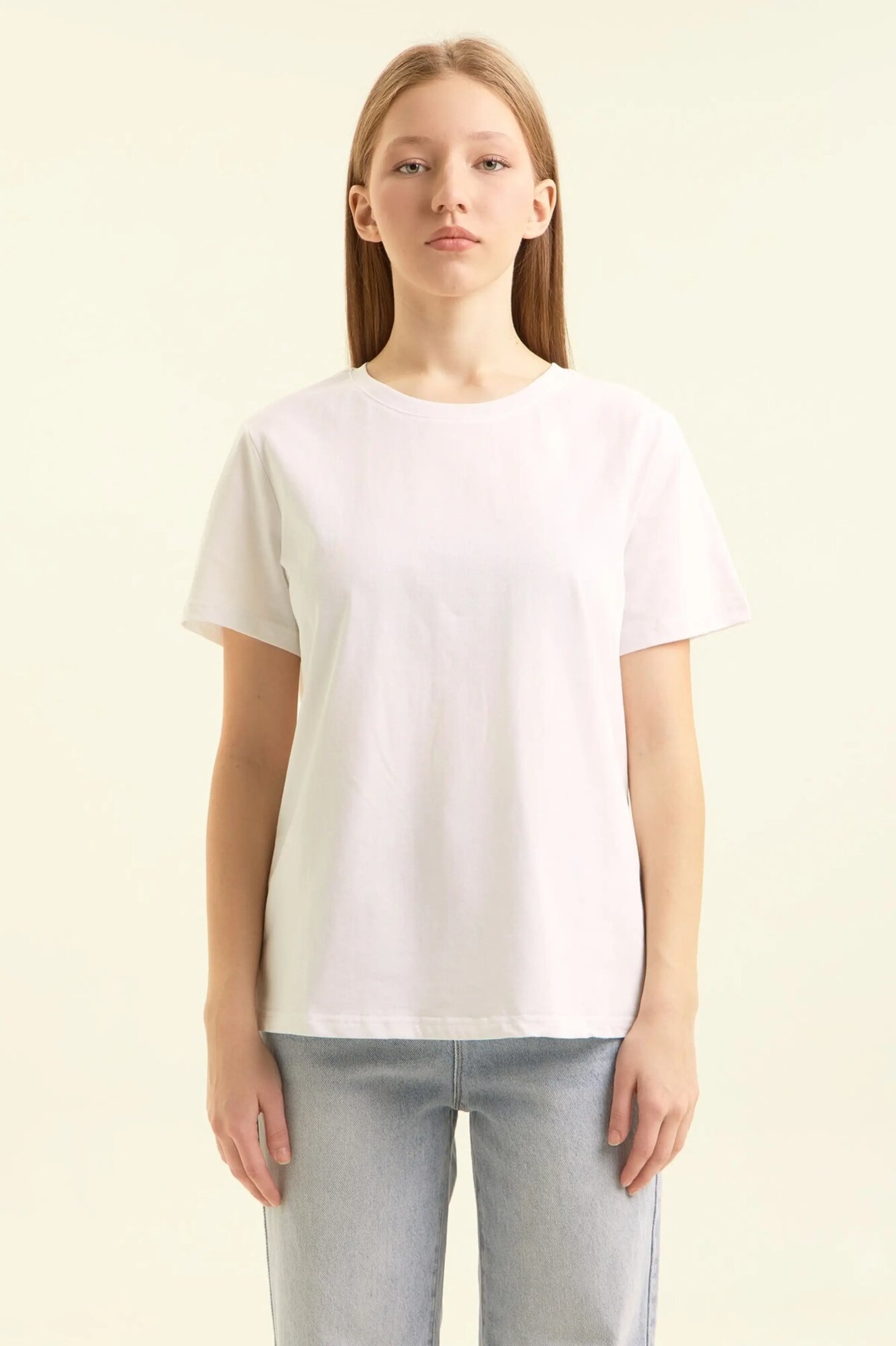 Футболка свободного кроя с короткими рукавами создаёт лаконичный повседневный образ, который легко адаптируется под разный стиль. Модель выполнена с прямой линией плеч и мягким круглым вырезом, что делает посадку комфортной и ненавязчивой. Лёгкое расширение к низу добавляет ощущение свободы и подчёркивает расслабленность силуэта. Незаметная фактура на поверхности создаёт аккуратный визуальный эффект и добавляет глубину даже самому простому сочетанию. Футболка гармонично смотрится как с джинсами, так и с более строгими элементами, позволяя формировать образ под любой повседневный сценарий.