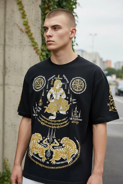 Детализированная проработка — помимо лицевой стороны, на затылочной части футболки размещены дополнительные тайские символы и орнаменты.