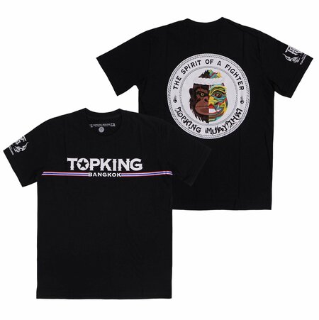Футболка имеет прямой покрой, круглый вырез горловины и короткие рукава, что делает ее удобной для ношения в любое время года. Она также оснащена надписью "Top King Boxing", которая добавляет ей уникальности и стильности.
