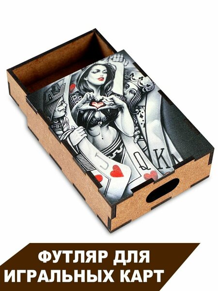 Футляр для игральных карт Дама Пик "Дама сердца", дерево, внутренние размеры 92 на 67мм