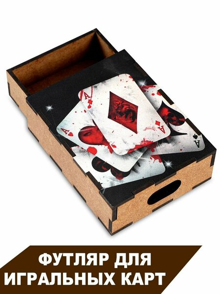 Футляр для игральных карт Дама Пик "Три туза", дерево, внутренние размеры 92 на 67мм