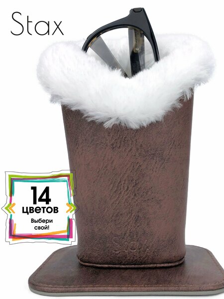 Настольный футляр для очков из экокожи с внутренней отделкой и опушкой искусственным мехом. Позволяет удобно и безопасно хранить очки там, где вы чаще всего их используете, на работе и дома: прикроватная тумба, рабочий стол, ванная комната … Футляр Stax можно установить в любом месте, а наличие различных цветовых решений позволит подобрать модель, наиболее подходящую для вашего интерьера. Чтобы положить очки в обычный футляр, его необходимо открыть и закрыть, обеими руками. Настольный футляр Stax использовать гораздо удобнее! · Подходит для любых корригирующих и солнцезащитных очков. · Защищает очки и линзы от царапин, продлевает их срок службы. Вы больше не переживаете, когда кладете очки на стол или на другую твердую поверхность. · Искусственный мех специально обработан и не оставляет ворсинок на линзах. · Экокожа и мех не имеют запаха. · Подставка футляра имеет плоскую, нескользящую поверхность, а также снабжена магнитным креплением к футляру, что обеспечивает компактность и безопасность при перевозке. Футляр Stax – великолепная идея подарка по любому случаю для всех кто носит очки. Stax - российский бренд потребительских и профессиональных аксессуаров для оптики. Разработано и произведено в России.