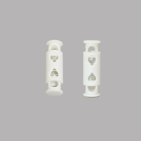 Фиксатор цилиндрической формы с пружинным механизмом позволяет регулировать натяжение шнура. Кроме того, эта деталь защищает шнур от повреждений, не дает ему 'потеряться' в кулиске. Используется при шитье рюкзаков, одежды для спорта, отдыха, верхней или детской одежды. Удачно сочетается с плотными эластичными шнурами в текстильной оплетке. Корпус изготовлен из пластика, выдерживает стирку и химическую чистку. Имеются 2 отверстия диаметром 3,5 мм. Размер стопора: 8,2х26 мм. Материал: пластик.
