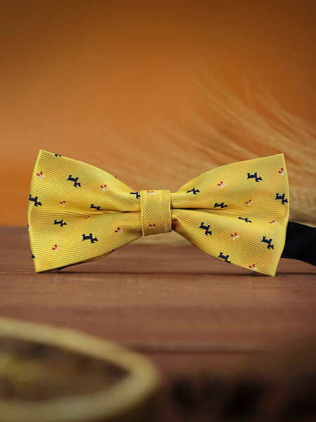 Галстук-бабочка мужской желтый с собачками - 1 шт.