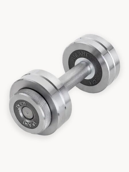 Гантели разборные 6 кг — ваш надежный партнер для эффективных тренировок! Эти наборные гантели позволяют регулировать вес в зависимости от ваших потребностей и уровня подготовки. Идеально подходят как для домашних тренировок, так и для профессионального использования в тренажерном зале. Основные особенности: — Удобство регулировки веса: благодаря съемным блинам, вы можете легко изменять нагрузку, адаптируя тренировку под свои цели. — Многофункциональность: гантели подходят для выполнения множества упражнений, направленных на развитие различных групп мышц. — Прочный материал: изготовлены из высококачественных материалов, обеспечивающих долговечность и надежность. Преимущества использования регулируемых гантелей 6 кг: — Экономия пространства: один комплект заменяет несколько пар гантелей разного веса. — Универсальность: подходят для тренировок любого типа — силовых, кардио, функциональных. — Простота хранения: компактные размеры позволяют удобно хранить гантели даже в небольших помещениях. Этот домашний тренажер станет отличным выбором для тех, кто ценит качество, функциональность и комфорт. С его помощью вы сможете эффективно прокачивать мышцы, улучшать выносливость и поддерживать отличную физическую форму. Начните свои тренировки с гантелями разборными 6 кг уже сегодня и достигайте новых спортивных вершин! Наши разборные гантели Атлант–это идеальное решение для домашних и профессиональных тренировочных занятий. Домашние тренировки становятся все популярнее, особенно с использованием гантелей. В наше время спорт и активный образ жизни очень популярен. Мы предлагаем вам отличный спортивный инвентарь для занятия фитнесом дома. Сборно-разборная гантель Атлант 6 кг состоит из хромистой стали; Состав: 4 диска по 1 кг, 2 гайки по 0,5 кг, 1 гриф 1 кг; С нанесением специального защитного антикоррозийного покрытия; Поставляются в прочной картонной коробке; Стандартный диаметр отверстия 26 мм. Накатка на грифе для удобства хвата;