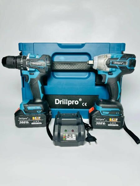 Набор из двух предметов гайковерта и шуруповерта, кейса, 2 шт батрареи, зарядного устройства.