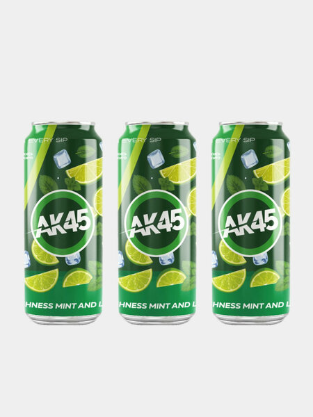 Freshness Mint and Lime, Nitro Boost и Strawberry Mojito. Каждый вариант дарит свой уникальный характер — от цитрусово-мятной свежести и легкости до насыщенного клубнично-мятного аромата и мощного энергетического заряда Nitro Boost. Напитки AK45 созданы для тех, кто ценит вкус, драйв и энергию в каждом мгновении. Безалкогольная формула с лёгкой газировкой утоляет жажду и придаёт бодрость в течение всего дня. Упаковка включает три алюминиевые банки по 500 мл — идеальный формат для пикников, тренировок или вечеринок. AK45 — это стиль, энергия и удовольствие в каждой банке.