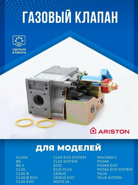 Газовый клапан Sit 845 Sigma для котлов Ariston/Сhaffoteaux 65104254 Данный газовый клапан - это многофункциональный блок управления подачей газа, обеспечивающий высокий уровень безопасности и эффективности работы газовых котлов. Оснащён двумя автоматическими запорными клапанами, регулятором давления и устройством для электрически управляемой модуляции мощности. Имеется возможность регулировки максимального и минимального уровней выходного давления. Варианты присоединения газовой арматуры: входной и выходной каналы с наружной или внутренней резьбой или при помощи фланцев. Имеет функцию полной модуляции. Устанавливается на следующие модели: Ariston Clas 24/28 CF/FF Ariston Clas System 24/28/32 CF/FF Ariston Clas Evo 24/28 CF/FF Ariston Clas Evo System 24/28/32 CF/FF Ariston Matis 24 CF/FF Ariston Genus 24/28/35 CF/FF Ariston Genus Evo 24/30/35 CF/FF Ariston BS, BS II 24 CF/FF Ariston Egis 24 CF/FF Ariston Egis Plus 24 CF/FF Сhaffoteaux Alixia 20/24 CF/FF Сhaffoteaux Pigma 25/30 CF/FF Сhaffoteaux Talia 25/30 CF/FF Сhaffoteaux Niagara C 25/30 CF/FF Производитель: Sit