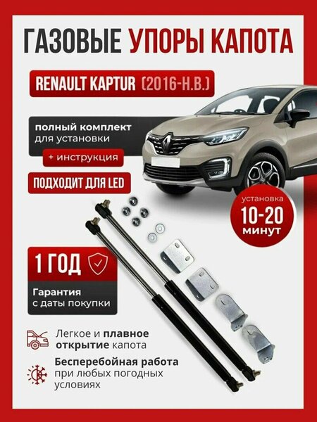 Внимание! Перед установкой под капот необходимо прокачать пневмоупоры - уперев шток в пол, полностью сжать и отпустить амортизатор НЕ менее 5 раз. Отличный выбор для внешнего тюнинга Рено Капур рестайлинг.