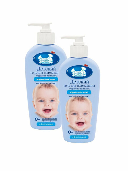 Детский гель для подмывания серии "Наша мама" на основе отваров трав подходит малышу с самого рождения. Благодаря мягкой моющей основе без мыла и красителей, воде обогащенной ионами серебра, Д-Пантенолу и отвару трав с натуральными компонентами календулы и ромашки, детский гель для подмывания очищает, снимает покраснения, успокаивает и увлажняет нежную кожу ребенка в интимных зонах. Запатентованная формула разработана с учетом естественного pH интимных зон малыша. По результатам клинический испытаний «Детский гель для подмывания младенцев» на основе натуральных отваров трав и Д-Пантенолом показал эффективность и безопасность. Гель рекомендован педиатрами для ежедневных гигиенических процедур у детей с рождения и к использованию в лечебно-профилактических учреждениях: родильных домах, перинатальных центрах, отделениях неонатологии, акушерских стационарах и в быту.
