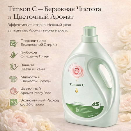 Гель для стирки Timson "Роза-Помело", ароматизированный, для всех типов тканей, 3л
