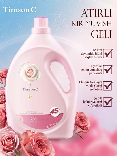 Timson Универсальный гель для стирки — это современное средство для бережного и эффективного ухода за любыми типами тканей. Подходит для белого, цветного, тёмного и детского белья. Благодаря сбалансированной формуле гель глубоко очищает волокна ткани, сохраняя их мягкость, цвет и свежесть после каждой стирки. Основные преимуществаУниверсальное применение — подходит для всех типов тканей и цветов: белого, цветного, чёрного и детского белья. Высокая эффективность — легко удаляет загрязнения, жир и пятна даже при низких температурах. Экономичный расход — достаточно 30–40 мл на одну загрузку стиральной машины (5–7 кг белья). Подходит для всех видов стирки — ручной и машинной, в холодной и тёплой воде (от 20 °C до 60 °C). Бережное отношение к ткани — не повреждает волокна, сохраняет форму и цвет одежды. Гипоаллергенная формула — безопасен для чувствительной кожи и стирки детских вещей. Антибактериальный эффект — устраняет до 99,9 % бактерий и неприятных запахов. Приятный аромат — лёгкий и свежий запах «Море цветов» или «Цветочный бриз» оставляет ощущение чистоты и свежести надолго. Объём и варианты упаковки1,25 л — удобный формат для небольшой семьи.2.6 л — стандартный вариант для регулярного использования.3 л / 3 кг — экономичная упаковка, рассчитанная примерно на 100–120 стирок. Способ примененияПеред стиркой взболтайте флакон. Залейте 30–40 мл геля в отсек стиральной машины или прямо на бельё. Для сильных загрязнений нанесите немного геля на пятно перед стиркой. Запустите обычный режим стирки при нужной температуре. После стирки наслаждайтесь чистотой, мягкостью и свежестью одежды.