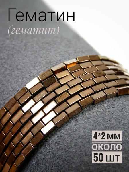 Гематин — средне-твердый, непрозрачный минерал с глубоким металлическим блеском. При попадании света его поверхность переливается характерными искристыми бликами. В изделиях такой минерал выглядит лаконично и благородно. Бусины из гематина имеют сквозное отверстие, позволяющее легко нанизывать на леску, нить, тонкую проволоку, ювелирный тросик или резинку. Форма прямоугольника идеально подходит в качестве разделителя или самостоятельного элемента. Бронзовый оттенок универсален и сочетается с огромным количеством цветов и материалов (металл, кожа, текстиль, камень, дерево, бисер, пайетки и прочее). Несколько идей для применения бусин: 1) Создание украшений (бижутерии). Это самый распространенный способ использования бусин. Из них можно создавать: колье и чокеры, бусы, браслеты, сотуары (длинные бусы), кулоны, серьги, броши и другие изделия. 2) Изготовление аксессуаров. Брелоки и подвески, украшения для волос (заколки, ободки, ленты и банты с декором, крабики). 3) Декор одежды и аксессуаров. Украшение сумок и клатчей, украшение головных уборов (ободки, повязки, береты), вышивка на одежде, декор ремней. 4) Декор предметов интерьера. Оклеивание ваз, бутылок, шкатулок, создание мозаичных изображений, украшение подсвечников, окантовка рамок для фотографий и зеркал. 5) Применение в технике скрапбукинг. Украшение альбомов, блокнотов, открыток и прочее. Это лишь несколько идей для старта. Все зависит только от вашей фантазии — творите и экспериментируйте!