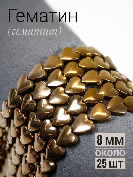 Гематин — средне-твердый, непрозрачный минерал с глубоким металлическим блеском. При попадании света его поверхность переливается характерными искристыми бликами. В изделиях такой минерал выглядит лаконично и благородно. Бусины из гематина можно легко нанизывать на леску, нить, тонкую проволоку, ювелирный тросик или резинку. Форма сердечка идеально подходит в качестве разделителя или самостоятельного элемента. Бронзовый оттенок универсален и сочетается с огромным количеством цветов и материалов (металл, кожа, текстиль, камень, дерево, бисер, пайетки и прочее). Несколько идей для применения бусин: 1) Создание украшений (бижутерии). Это самый распространенный способ использования бусин. Из них можно создавать: колье и чокеры, бусы, браслеты, сотуары (длинные бусы), кулоны, серьги, броши и другие изделия. 2) Изготовление аксессуаров. Брелоки и подвески, украшения для волос (заколки, ободки, ленты и банты с декором, крабики). 3) Декор одежды и аксессуаров. Украшение сумок и клатчей, украшение головных уборов (ободки, повязки, береты), вышивка на одежде, декор ремней. 4) Декор предметов интерьера. Оклеивание ваз, бутылок, шкатулок, создание мозаичных изображений, украшение подсвечников, окантовка рамок для фотографий и зеркал. 5) Применение в технике скрапбукинг. Украшение альбомов, блокнотов, открыток и прочее. Это лишь несколько идей для старта. Все зависит только от вашей фантазии — творите и экспериментируйте!