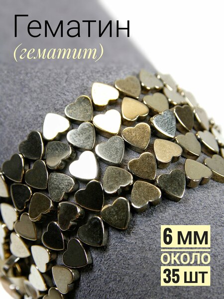 Гематин — средне-твердый, непрозрачный минерал с глубоким металлическим блеском. При попадании света его поверхность переливается характерными искристыми бликами. В изделиях такой минерал выглядит лаконично и благородно. Бусины из гематина с горизонтальным отверстием можно легко нанизывать на леску, нить, тонкую проволоку, ювелирный тросик или резинку. Форма сердечка идеально подходит в качестве разделителя или самостоятельного элемента. Золотистый оттенок универсален и сочетается с огромным количеством цветов и материалов (металл, кожа, текстиль, камень, дерево, бисер, пайетки и прочее). Несколько идей для применения бусин: 1) Создание украшений (бижутерии). Это самый распространенный способ использования бусин. Из них можно создавать: колье и чокеры, бусы, браслеты, сотуары (длинные бусы), кулоны, серьги, броши и другие изделия. 2) Изготовление аксессуаров. Брелоки и подвески, украшения для волос (заколки, ободки, ленты и банты с декором, крабики). 3) Декор одежды и аксессуаров. Украшение сумок и клатчей, украшение головных уборов (ободки, повязки, береты), вышивка на одежде, декор ремней. 4) Декор предметов интерьера. Оклеивание ваз, бутылок, шкатулок, создание мозаичных изображений, украшение подсвечников, окантовка рамок для фотографий и зеркал. 5) Применение в технике скрапбукинг. Украшение альбомов, блокнотов, открыток и прочее. Это лишь несколько идей для старта. Все зависит только от вашей фантазии — творите и экспериментируйте!