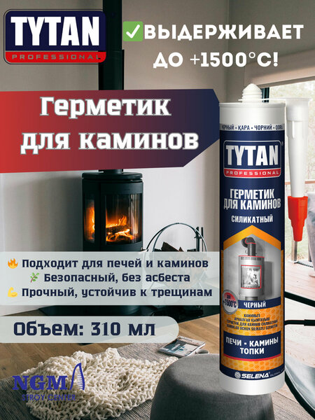 Герметик для каминов Tytan 001870, огнеупорный, до +1500 °C, черный