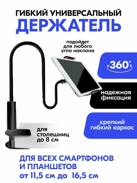 {"widgets":{"@card/UniversalPromoBadge":{"/content/page/fancyPage/defaultPage/universalPromoBadge":{"wrapperProps":{"margins":{"bottom":"3"}},"initialTime":1771482186966,"offerComposeId":"16329925904128959738"}}},"meta":{"/content/page/fancyPage/defaultPage/universalPromoBadge":{"name":"@card/UniversalPromoBadge"}},"collections":{"productServiceSnippets":{"16329925904128959738":{"productSnippet":{"snippetId":"document_id","type":"MODEL_CARD_LAYOUT","productPayload":{"snippetStyle":"NORMAL","title":{"value":"Гибкий держатель для планшета/смартфона с креплением к столу"},"badges":{},"price":{"actualPrice":{"amount":{"intPart":111252,"currency":"UZS"},"style":"RED","type":"OTHER_DISCOUNT"},"oldPrice":{"amount":{"intPart":111252,"currency":"UZS"},"style":"STRIKETHROWED"}},"signals":{"customsFee":{"text":{"text":"Возможна пошлина"}}},"gallery":{"mediaItems":[{"picture":{"baseUrl":"https://avatars.mds.yandex.net/get-mpic/12306721/2a0000019c19321f4de0549ea6edae1ff4c2/","width":1500,"height":2000,"title":"Гибкий держатель для планшета/смартфона с креплением к столу"},"type":"IMAGE"},{"picture":{"baseUrl":"https://avatars.mds.yandex.net/get-mpic/1862701/2a0000019c19321f4ddb60b360cf2c45d9d5/","width":1500,"height":2000,"title":"Гибкий держатель для планшета/смартфона с креплением к столу"},"type":"IMAGE"},{"picture":{"baseUrl":"https://avatars.mds.yandex.net/get-mpic/18137160/2a0000019c19321f4c50e7255c0ec4a26d06/","width":1500,"height":2000,"title":"Гибкий держатель для планшета/смартфона с креплением к столу"},"type":"IMAGE"},{"picture":{"baseUrl":"https://avatars.mds.yandex.net/get-mpic/4034372/2a0000019c19321f4c42c2e4e1d24195dc83/","width":1500,"height":2000,"title":"Гибкий держатель для планшета/смартфона с креплением к столу"},"type":"IMAGE"},{"picture":{"baseUrl":"https://avatars.mds.yandex.net/get-mpic/12569791/2a0000019c19321f4c7cb38a0168798ef000/","width":1500,"height":2000,"title":"Гибкий держатель для планшета/смартфона с креплением к столу"},"type":"IMAGE"},{"picture":{"baseUrl":"https://avatars.mds.yandex.net/get-mpic/17873630/2a0000019c19321f4c8eeee2976899d4270b/","width":1500,"height":2000,"title":"Гибкий держатель для планшета/смартфона с креплением к столу"},"type":"IMAGE"},{"picture":{"baseUrl":"https://avatars.mds.yandex.net/get-mpic/18718263/2a0000019c19321f4c53221f643084d9104c/","width":1500,"height":2000,"title":"Гибкий держатель для планшета/смартфона с креплением к столу"},"type":"IMAGE"},{"picture":{"baseUrl":"https://avatars.mds.yandex.net/get-mpic/18473042/2a0000019c19321f4bd24e6a9d36c9907f5d/","width":1500,"height":2000,"title":"Гибкий держатель для планшета/смартфона с креплением к столу"},"type":"IMAGE"},{"picture":{"baseUrl":"https://avatars.mds.yandex.net/get-mpic/17394233/2a0000019c19321f4daa3061889cb3ebc3eb/","width":1500,"height":2000,"title":"Гибкий держатель для планшета/смартфона с креплением к столу"},"type":"IMAGE"}]},"rating":{"ratingValue":4.2,"ratingCount":532,"reviewsCount":141,"ratingCountStats":{"cnt1":50,"cnt2":28,"cnt3":45,"cnt4":65,"cnt5":344},"snippet":{"rating":"4.2","type":"product","description":"(532) · 1.8K купили","descriptionList":["(532)","1.8K купили"],"ratingStar":"4"}},"wishlistButton":{"businessId":50186095,"mskuId":4533239720,"modelId":1951084177,"oskuId":101923574752,"offerId":"rpqBl0l69D8OvptxHhImaQ"},"productRating":{"rating":"4.2","type":"product","description":"(532) · 1.8K купили","descriptionList":["(532)","1.8K купили"],"ratingStar":"4"}},"baobabPayload":{"type":"offer","wareId":"rpqBl0l69D8OvptxHhImaQ","modelId":1951084177,"marketSku":"4533239720","snippet_type":"product","isExpress":false,"price":111252,"additionalPrices":[{"priceType":"withDiscount","priceValue":111252},{"priceType":"unknown","priceValue":111252}],"hid":70318271,"shopId":431782,"shopSku":"RSDeviceHolder04FlexBlack","supplierId":60662601,"supplierType":3,"isUltima":false,"oskuId":101923574752,"snippetTheme":"GRID_FULL","stockCount":57,"rating":{"rating":"4.2","purchaseCount":"1848","gradesCount":"532","ratingType":"product"},"promoLogJoinId":"f3bcf513fa9b263a53650997df2a8da3/895bce9bba31a498","shopPromoIds":["price_increase_promo_60662601"]},"themeType":"GRID_FULL"}}}}}